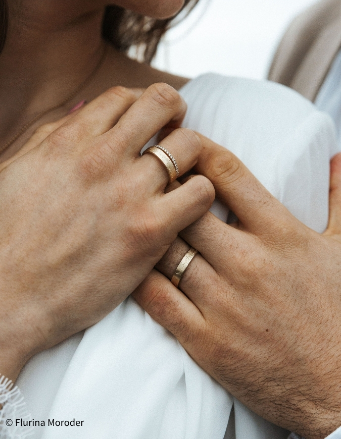 Im Atelier von Anna Waibel Schmuck ist der Trauring weit mehr als ein Schmuckstück – er ist ein Symbol für Liebe und Bindung, das die Zeit Überdauert. Sämtliche Trauringe werden in der Goldschmiede daher mit größter Sorgfalt und Hingabe gefertigt, sodass sie die Einzigartigkeit der jeweiligen Beziehung widerspiegeln.